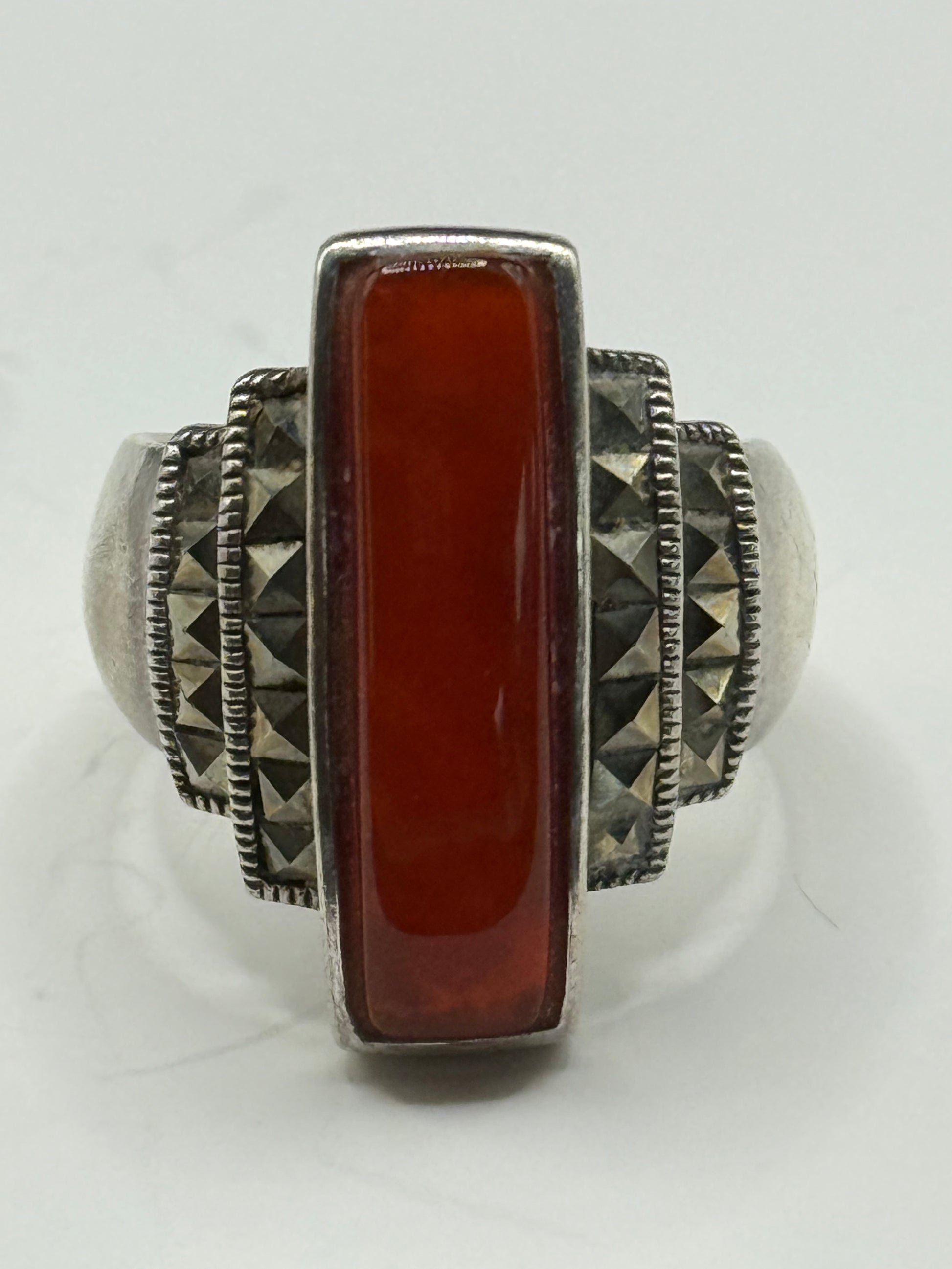 Art Deco Fadi Sterling Silver Ring with Carnelian Stone