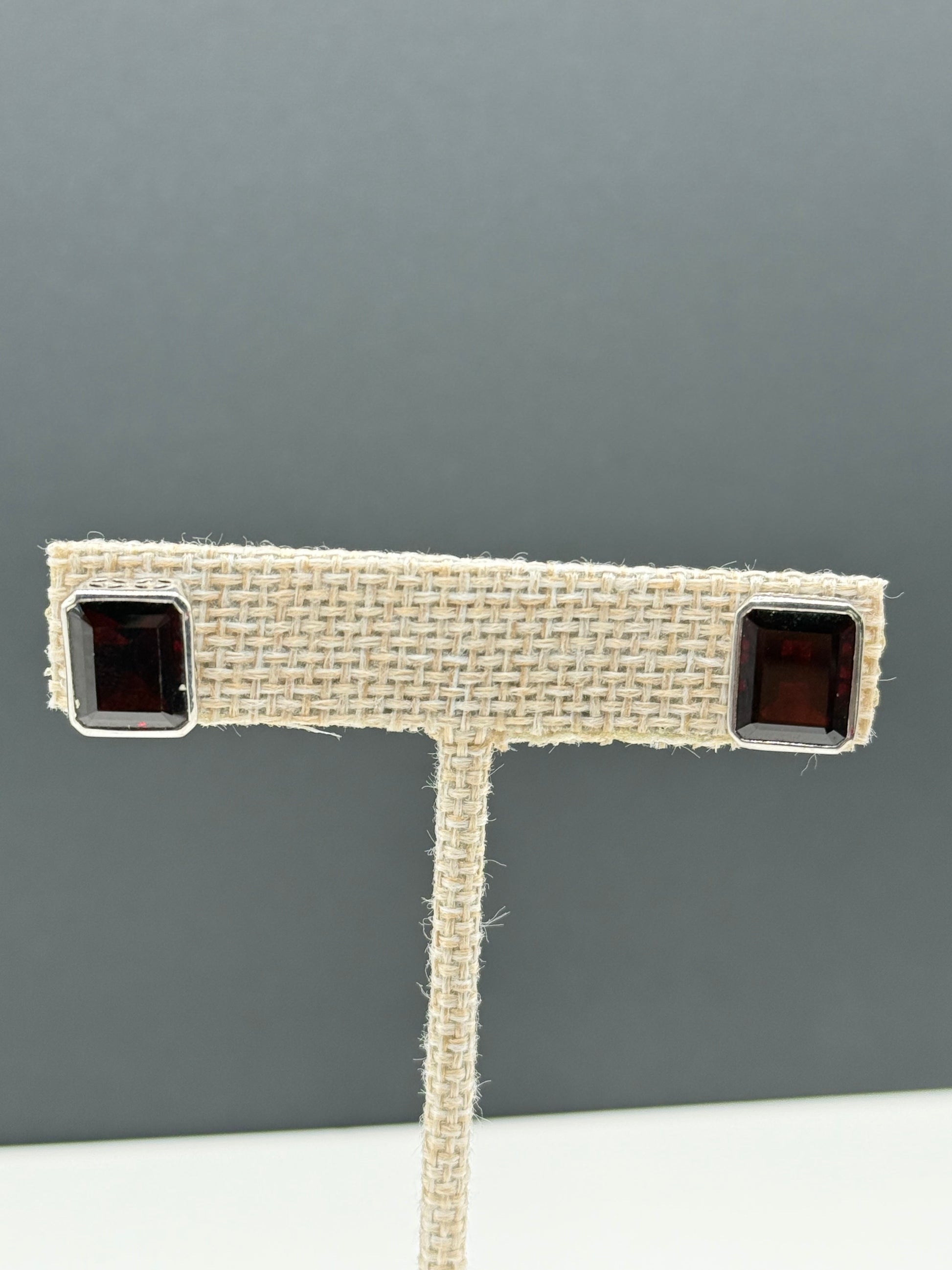 Emerald Cut Garnet and Sterling Earrings
