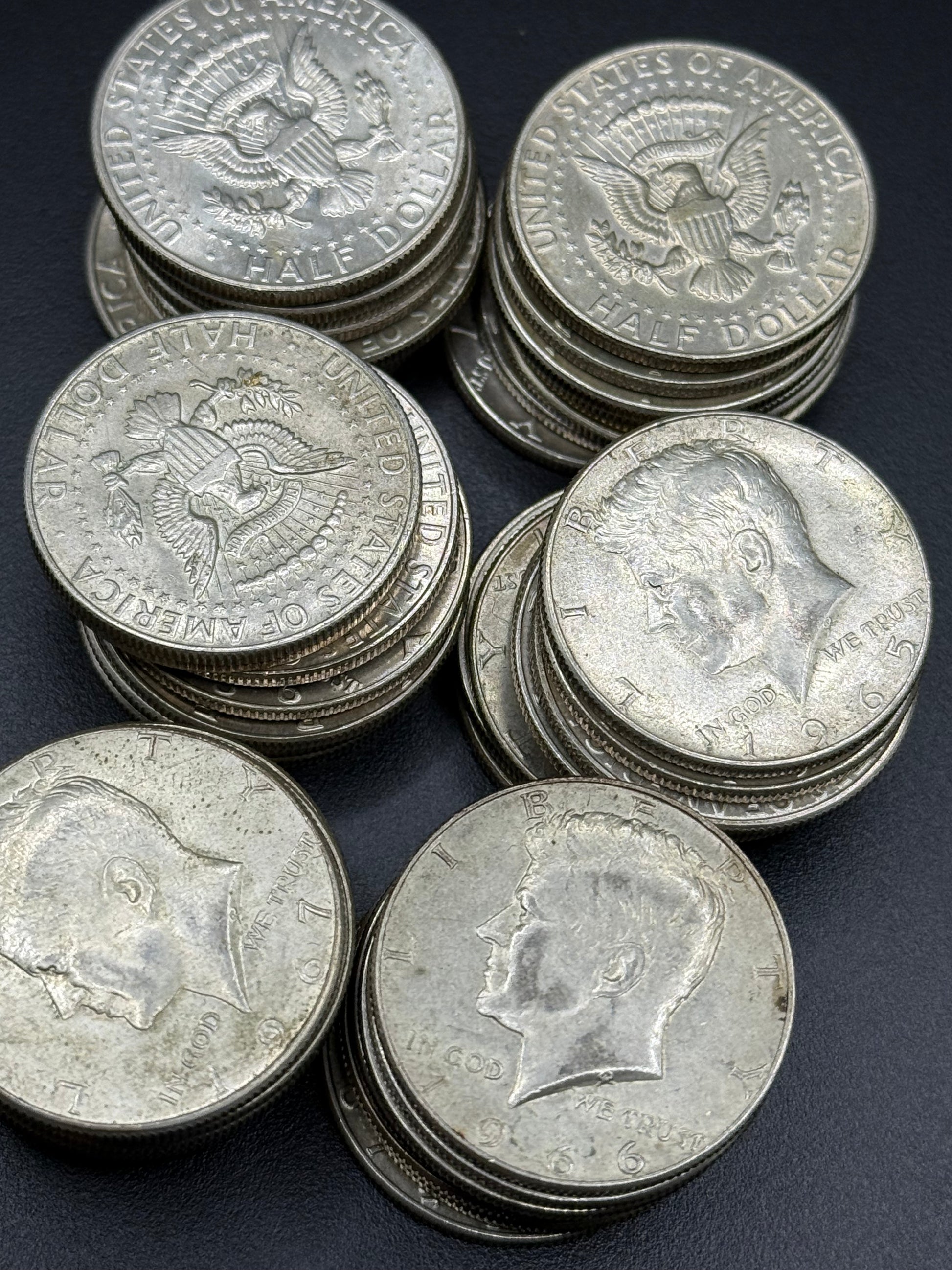 Huge lot of Silver Kennedy Half Dollars 48pcs