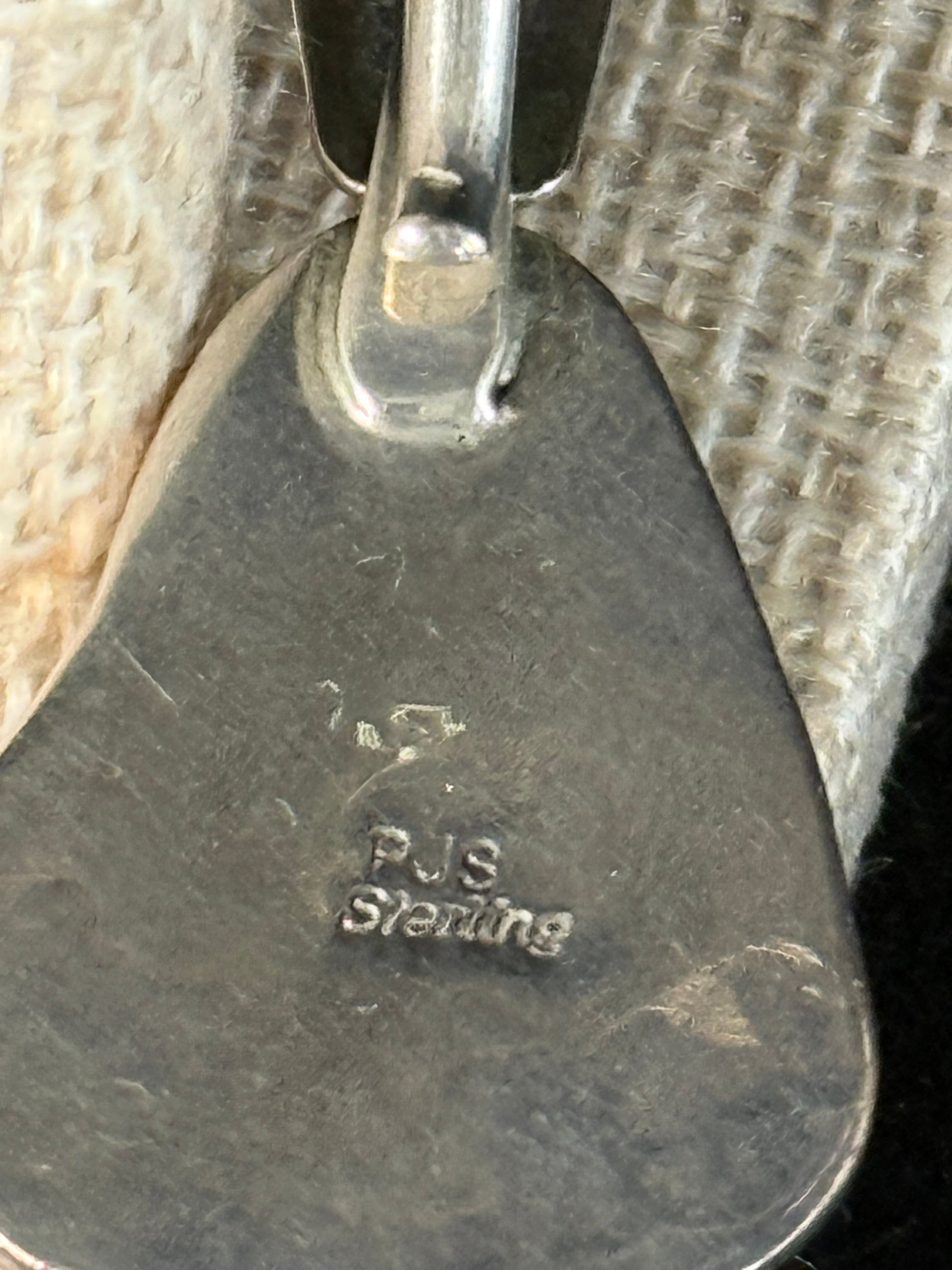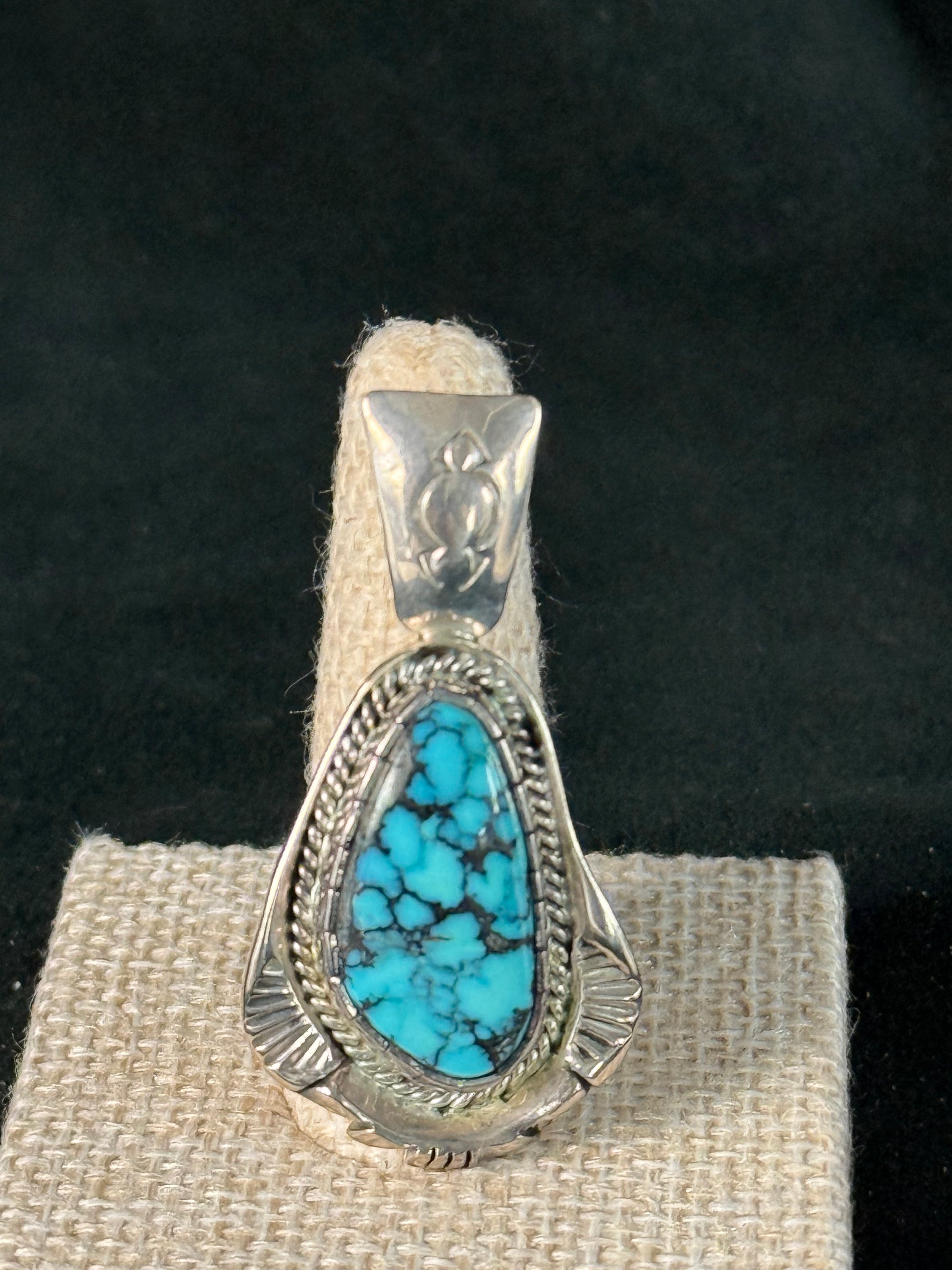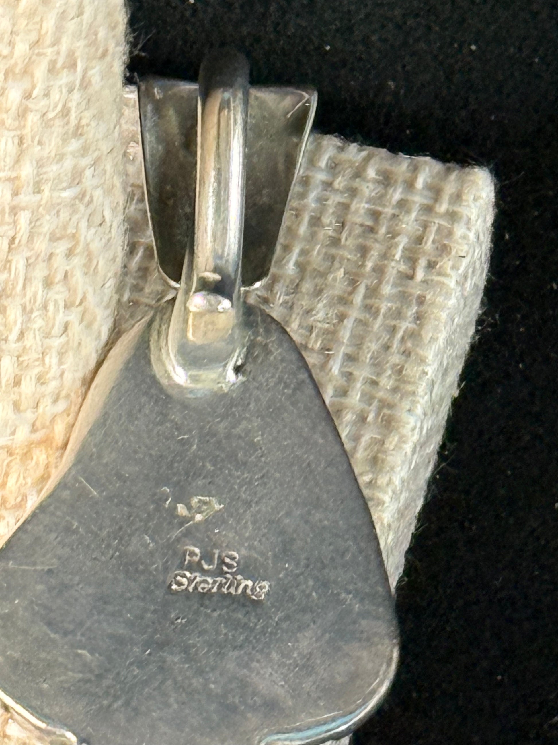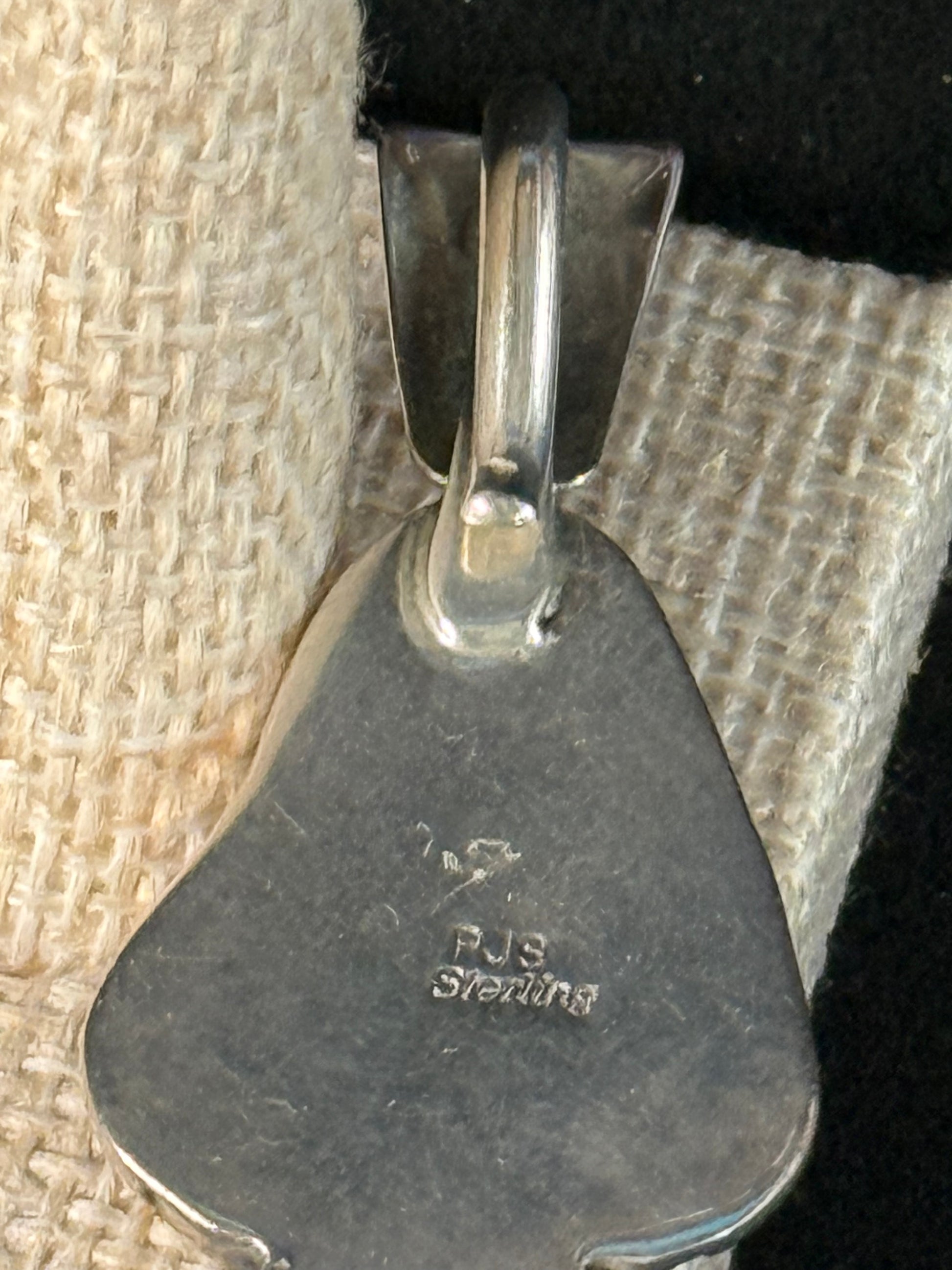 Navajo Signed By Designer PJS Sterling 925 Spiderweb Natural TURQUOISE Pendant