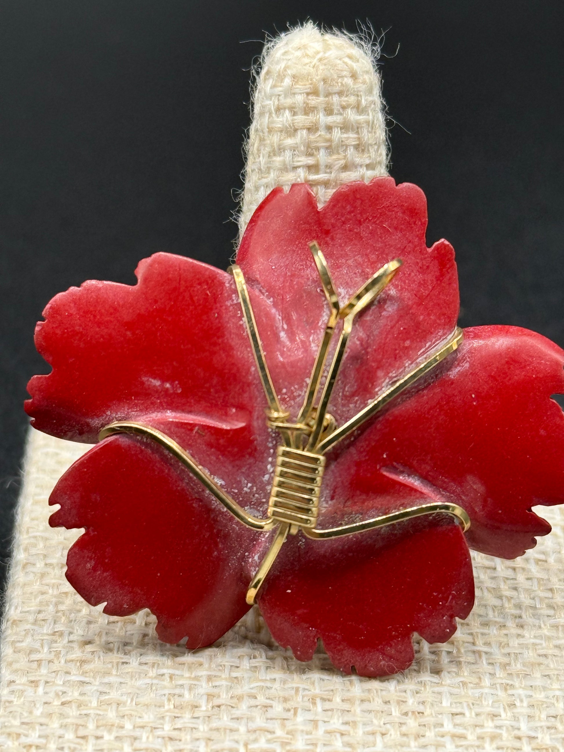 Nolan Miller red lucite and crystal flower brooch pin