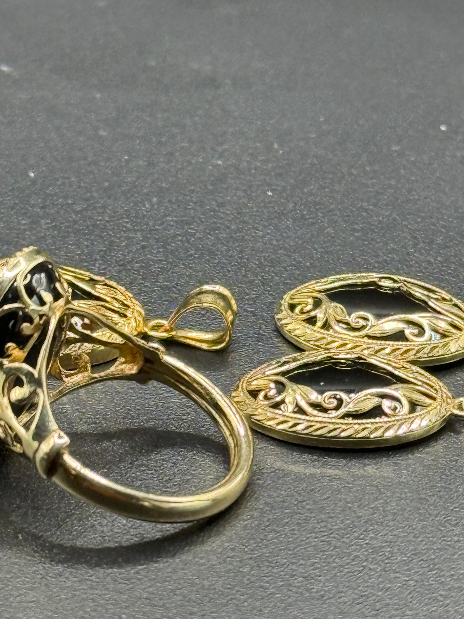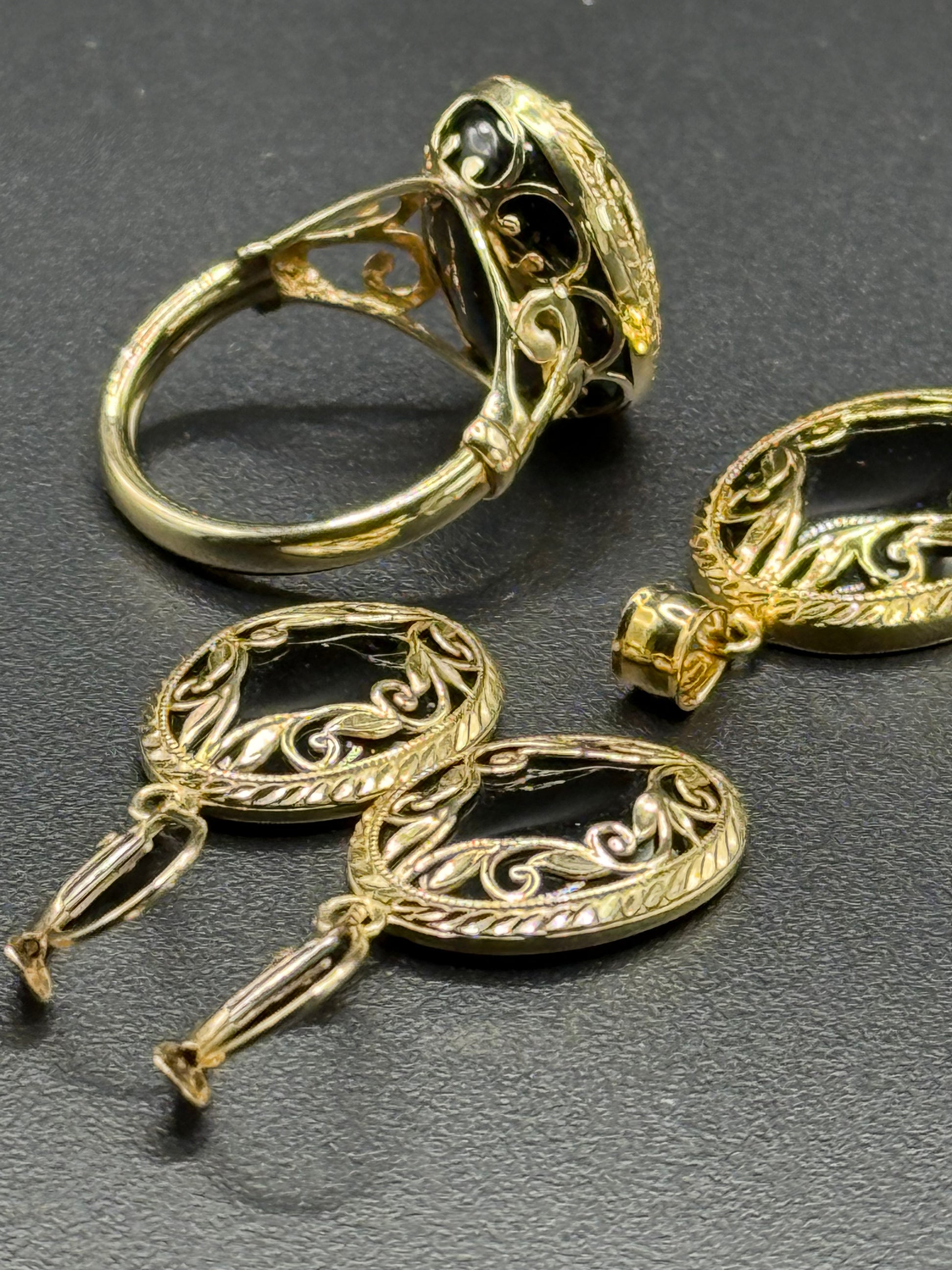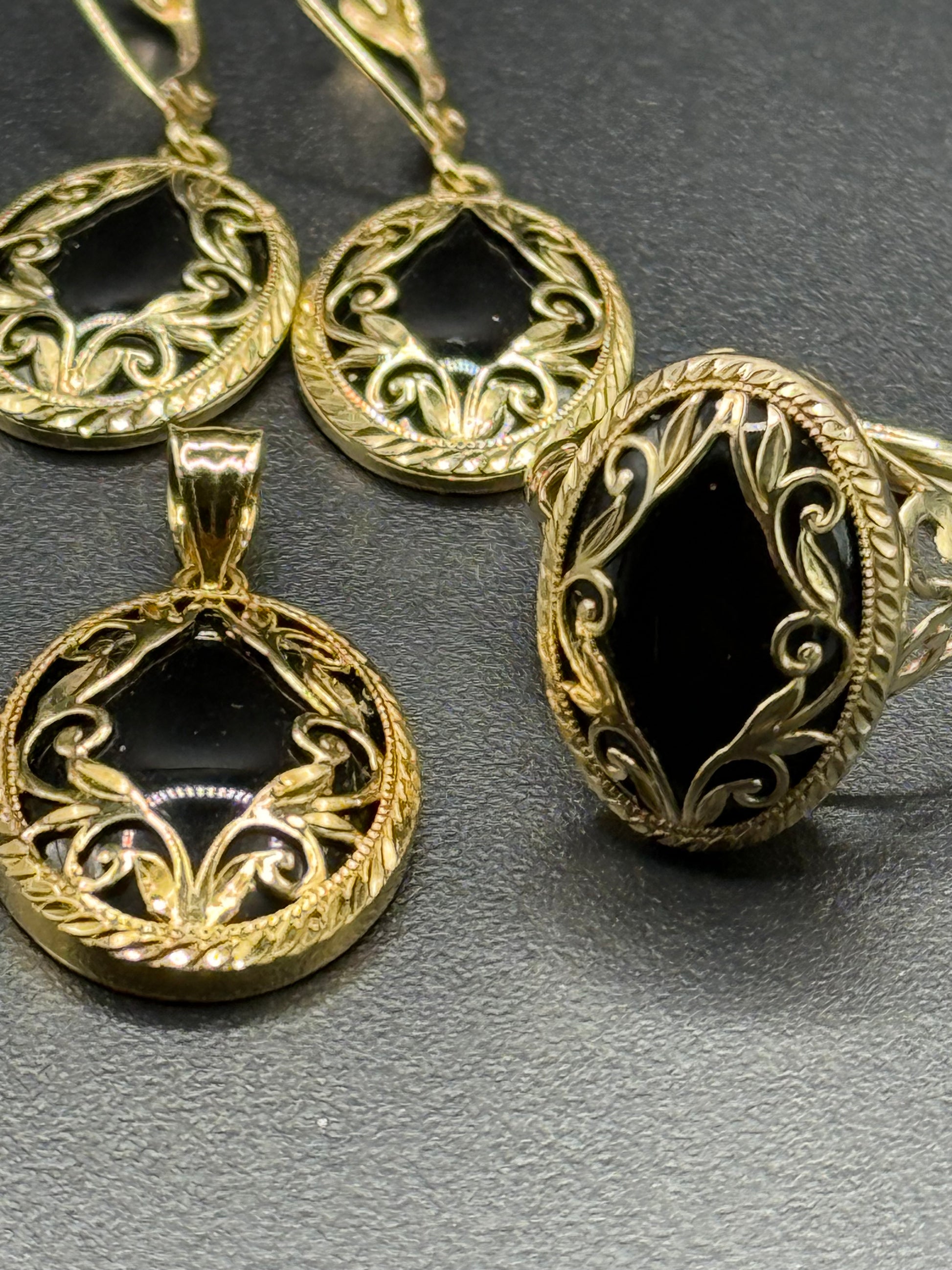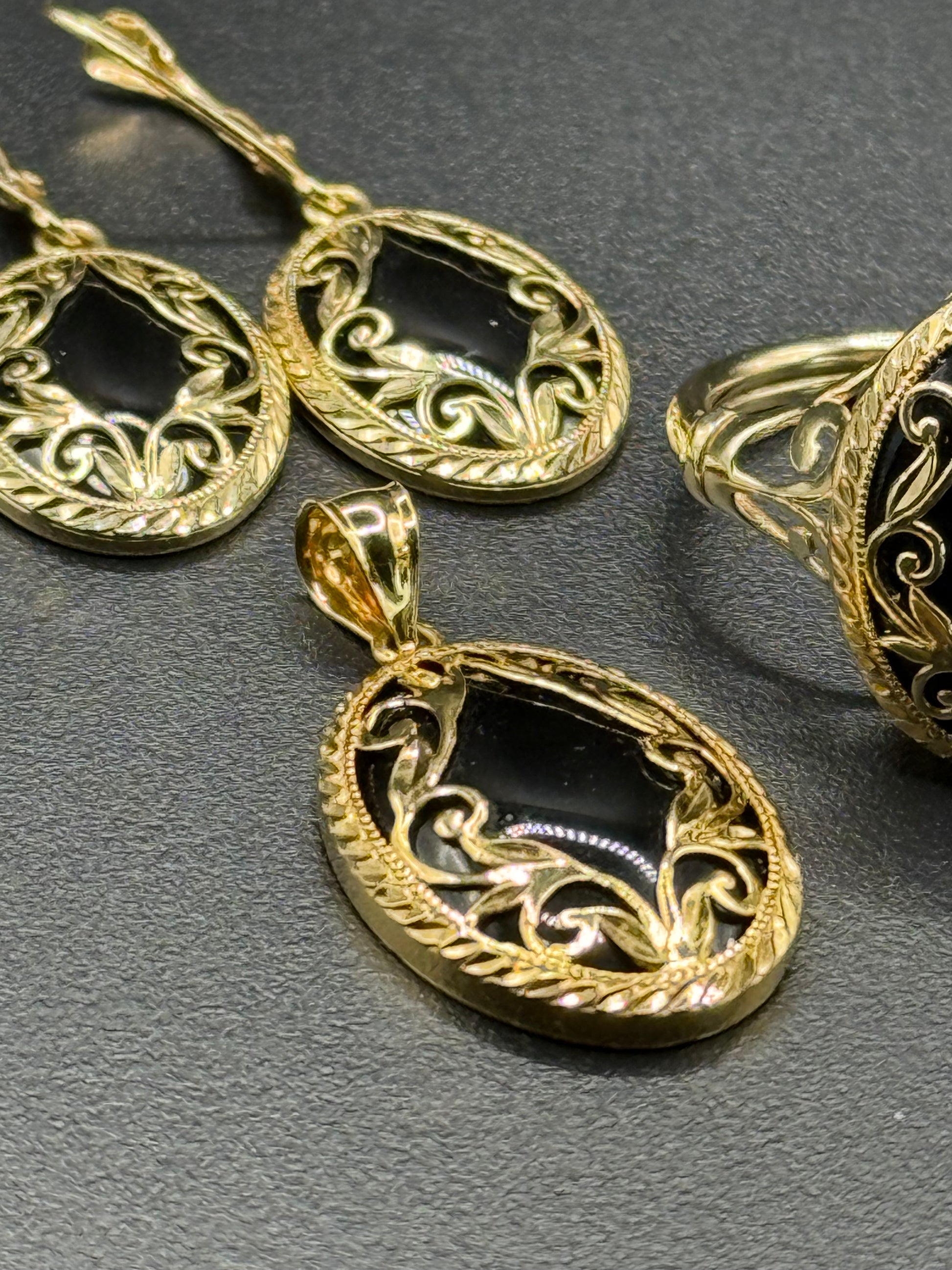 Onyx Scrollwork Ring Set in 14kt Yellow Gold