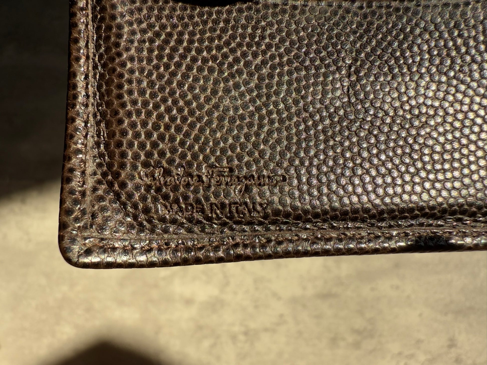 Salvatore Ferragamo - Men's Double Gancini Pebbled Leather Brown