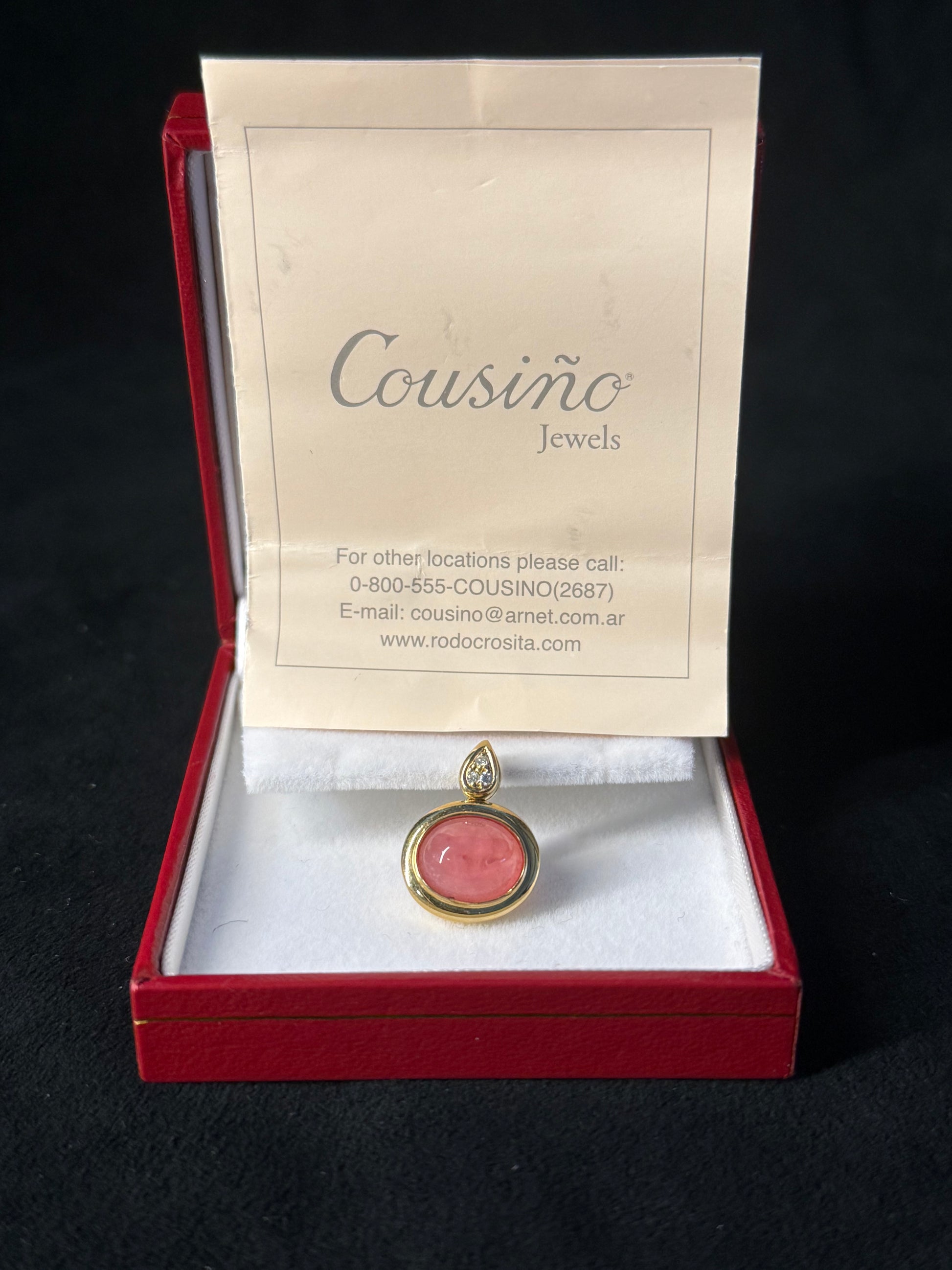 Cousiño Jewels rhodochrosite and diamond pendant in 18k Gold