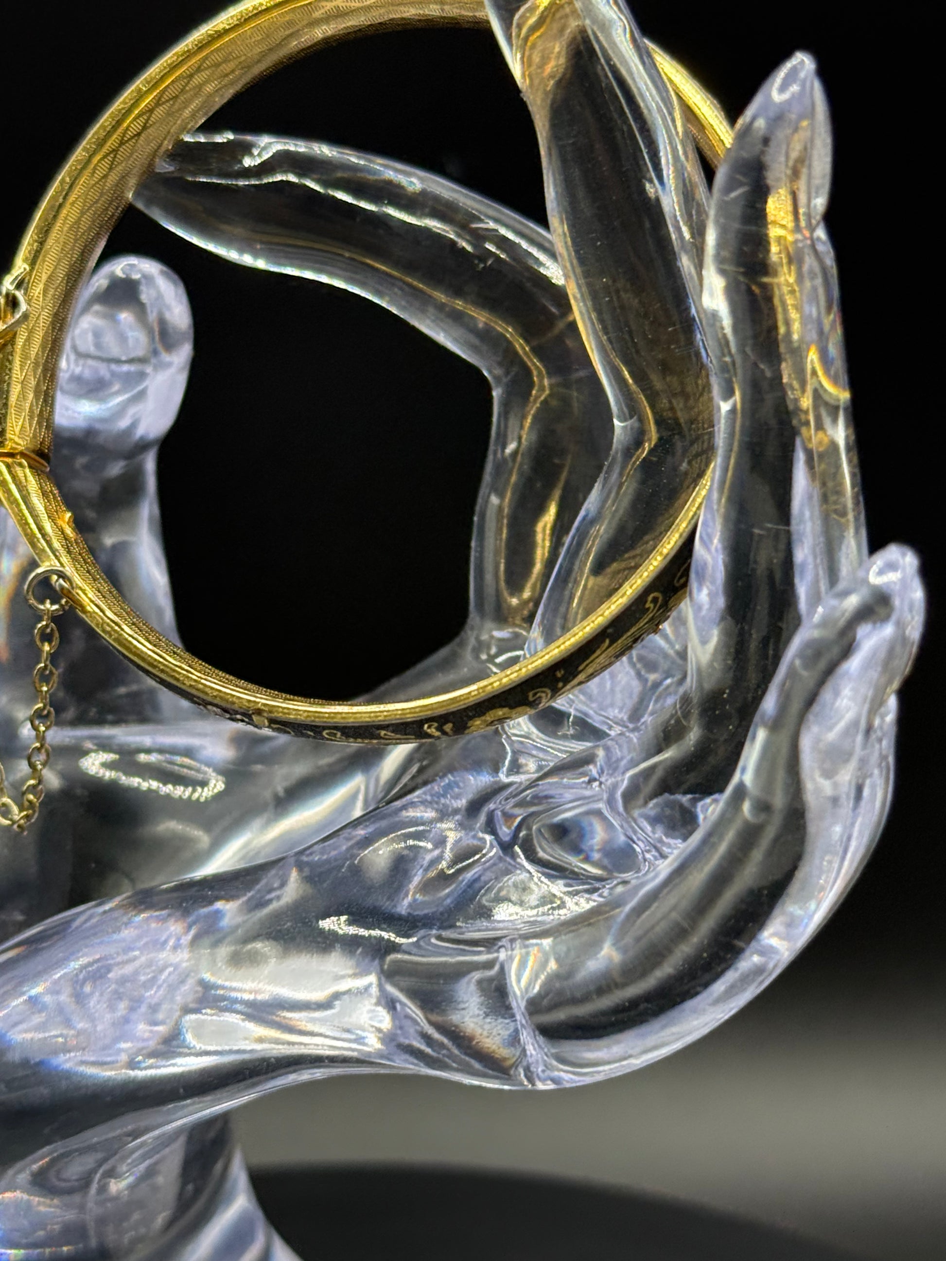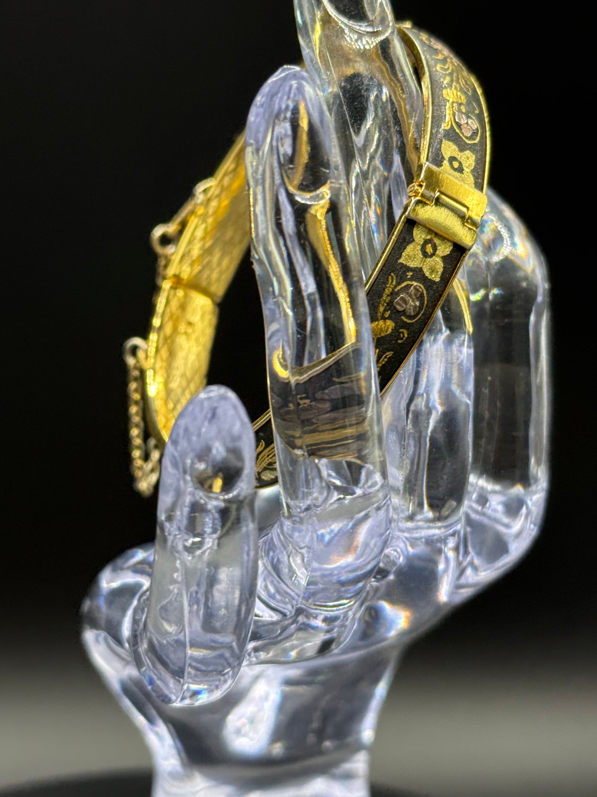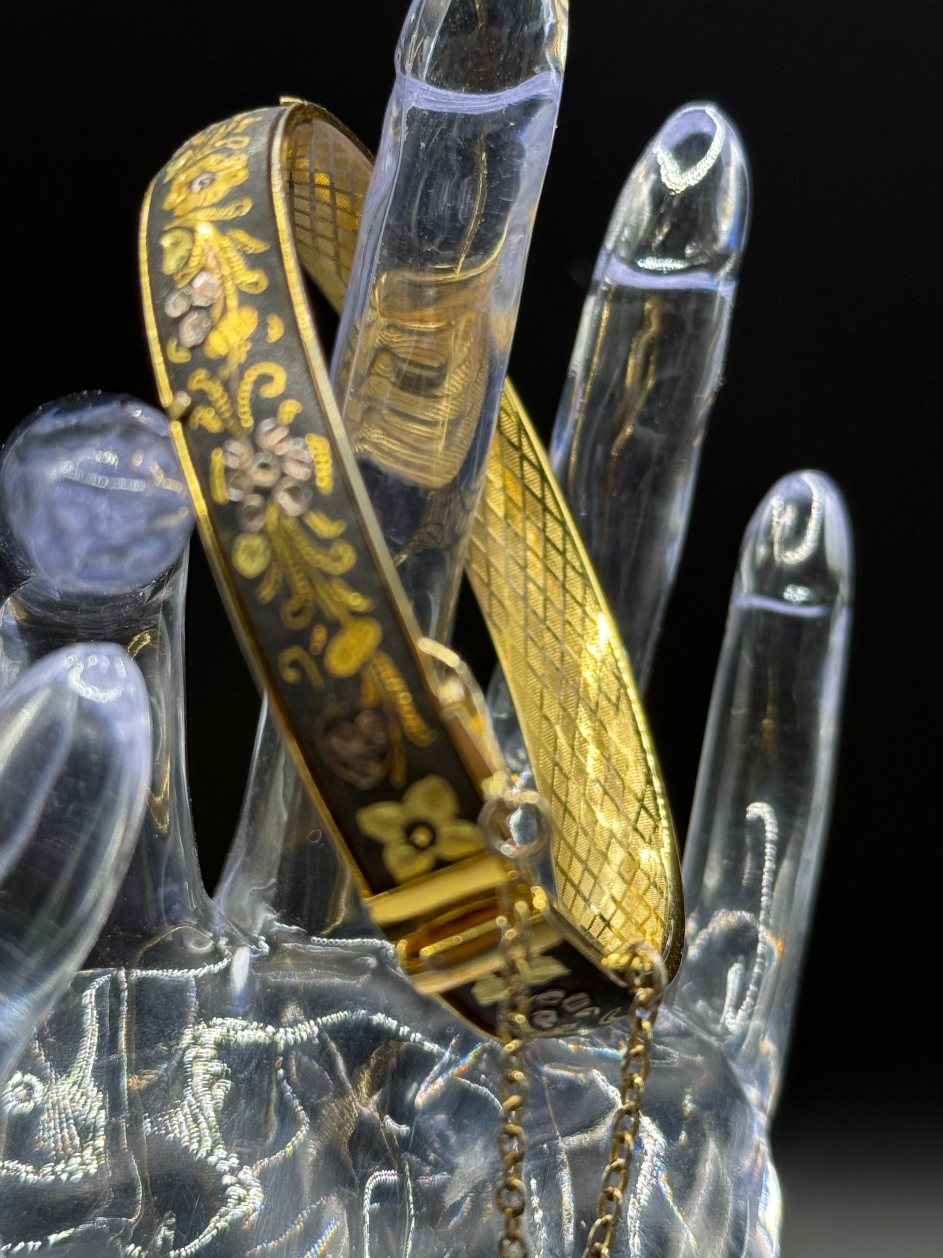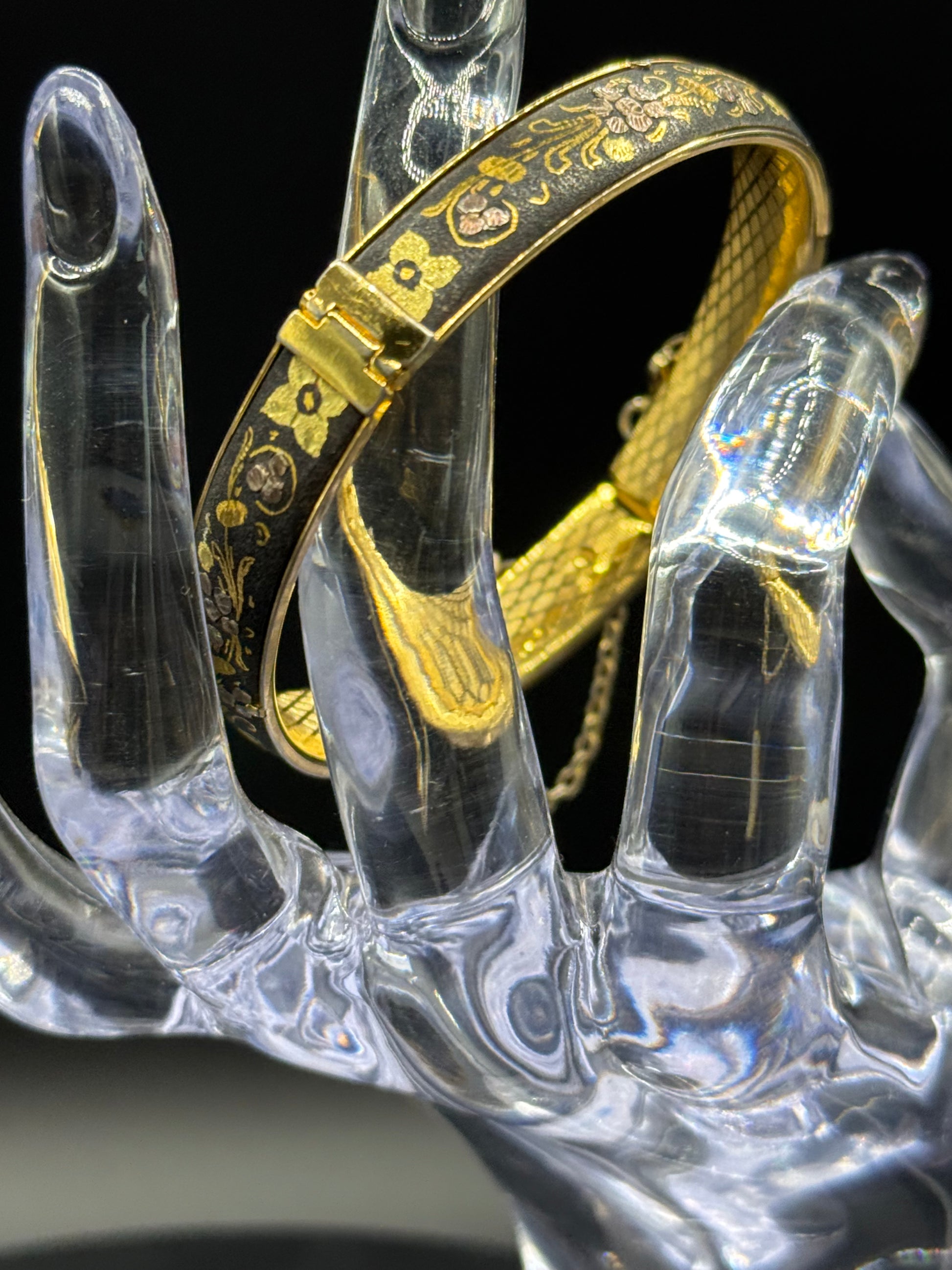 Vintage Gorgeous DAMASCENE Foliage Leaves Hinged Bracelet 2 3/8” Inside Diameter